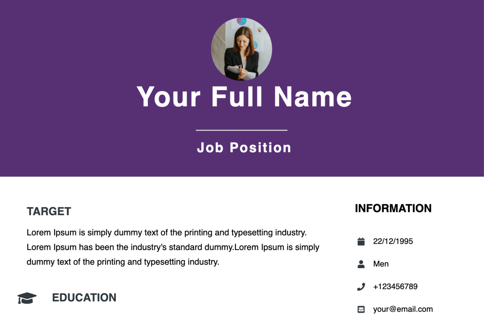 Choose from a selection of recruiter-approved layout designs for different job types